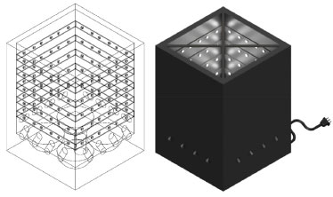 ![]() Figura 3. Vista isométrica com LED das paredes do fotoreator