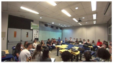 ![]() Figura 2. Momento de discussão na etapa 1 da implementação do caso investigativo