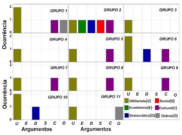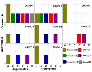 ![]() Figura 6. Ocorrência dos argumentos apresentados pelos grupos na etapa 3