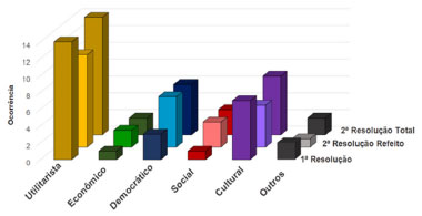 Vale destacar que as últimas colunas (2ª resolução total) consideram a 1ª resolução para os grupos que não refizeram o trabalho e a 2ª resolução daqueles que optaram por corrigir a partir dos feedbacks do professor formador. Alguns pontos merecem destaque: o argumento democrático, por exemplo, teve sua ocorrência duplicada em relação à 1ª entrega. Os argumentos econômico e social passaram a apresentar maior ocorrência após a 2ª resolução. Os argumentos utilitarista, cultural e "outros" permaneceram com a mesma ocorrência. Diante disso, o argumento utilitarista se apresenta persistente, corroborando as afirmações apresentadas por Millar. Esse fato parece apontar para a necessidade de ajustes tanto na forma de condução da resolução do CI, com intervenções mais incisivas do formador para problematizar concepções utilitaristas resistentes, quanto na melhoria do texto de referência e na assertividade dos feedbacks do formador. Sobejamente, assim como discutido na seção anterior, as concepções dos alunos ingressantes não seriam modificadas de forma abrupta como resultado de apenas uma intervenção e, nesse sentido, precisariam ser processualmente trabalhadas ao longo de todo curso. Contudo, a despeito dessa constatação, os dados compilados parecem apontar que houve um impacto positivo da implementação do CI, principalmente associado a dois fatores. O primeiro está voltado para o formato da mediação empregada pelo professor formador que esteve pautado no estímulo à reflexão crítica dos argumentos considerados. Já o segundo fator está relacionado ao caráter formativo de avaliação empregado na disciplina. Essa organização previa uma oportunidade para os alunos refletirem e reescreverem resoluções do caso após a primeira entrega e a partir dos feedbacks apresentados pelo professor formador. Assim, além da melhoria da nota, puderam desenvolver e evoluir seus conhecimentos sobre a temática.