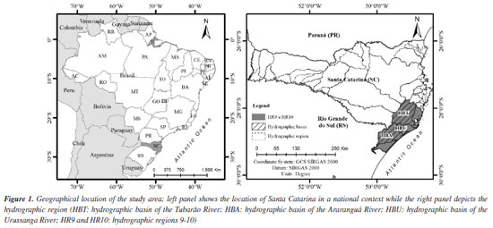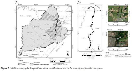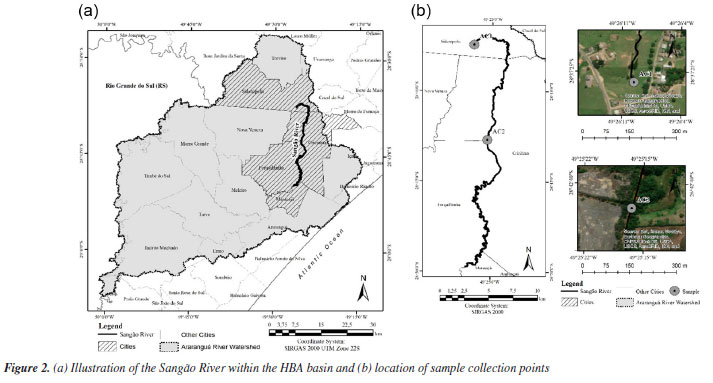 EXPERIMENTAL Study area and sample collection The study was performed in the Sangão River. This river has its source in the municipality of Siderópolis, SC, and its mouth at the Mãe Luzia River, on the territorial boundary between the municipalities of Maracajá, SC, and Forquilhinha, SC (Figure 2a). It is considered one of the fifteen most important rivers of the HBA water system, crossing a large area of the municipality of Criciúma and being the destination for effluent discharge after treatment in the wastewater treatment plant (WWTP).19