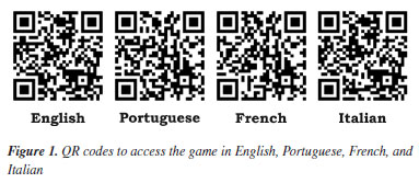 METHODOLOGY Description of Stereochemistry Race game The Stereochemistry Race was developed and hosted on the online platform PlayingCards27-30 and is available in digital format in English,27 Portuguese,28 French,29 and Italian.30 Figure 1 shows the QR codes with direct access links to the game in the respective languages mentioned. Created to review stereochemistry content, the Stereochemistry Race is designed for high school and undergraduate students. It can be played either in-person or remotely on computers and mobile devices. For remote play, the parallel use of communication platforms such as WhatsApp, Google Meet, Zoom, or Microsoft Teams is recommended to facilitate interaction among participants and monitoring by the mediator or professor.