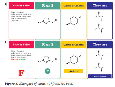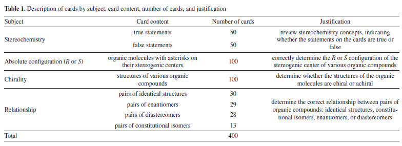 The deck is composed of 400 cards of four types, covering the following stereochemistry topics (Table 1):