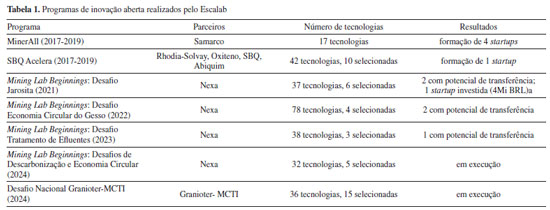 Programas de inovação aberta na área de química: o caso do Mining Lab Beginnings-Nexa que conecta universidade-empresa estimulando o licenciamento de tecnologias e criação de startups Open innovation programs in the area of chemistry: the case of Mining Lab Beginnings-Nexa to conect universities-industry and promote technology licensing and startup creation |