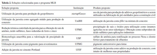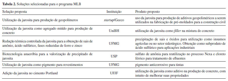 Mining Lab University Criado com o intuito de fomentar o meio acadêmico e promover a cultura de inovação por meio de desafios reais da indústria de mineração e metalurgia. É destinado aos estudantes universitários e, além disso, busca atrair novos talentos para ingressar na companhia. Mining Lab Channel O programa foi criado como uma oportunidade de deixar a Nexa com as portas abertas para soluções inovadoras durante todo o ano. Os proponentes podem inscrever suas soluções à Nexa em qualquer momento. As inscrições passam por um filtro e são apresentadas às áreas específicas relacionadas aos desafios. Mining Lab Miningthon Foi criado com o intuito de buscar soluções provenientes do ecossistema global de inovação para desafios corporativos que possuam alto nível de maturidade ou baixa necessidade de customização. Neste programa, as soluções são testadas e escalonadas com maior agilidade. Mining Lab Challenge Foi elaborado com o intuito de apoiar iniciativas de empreendedores que desejam desenvolver projetos de inovação tecnológica para a indústria da mineração e metalurgia em temas específicos que são priorizados pela empresa. Mining Lab Beginnings O programa Mining Lab Beginnings (MLB), objeto deste trabalho, foi criado em 2021 e é definido pela Nexa como: "É o programa mais recente da plataforma Mining Lab e apresenta desafios de médio à longo prazo que estão em baixo nível de maturidade tecnológica ou que necessitam de alto nível de customização para viabilidade. O foco é realizar o estudo conceitual e prova de conceito de uma ideia inovadora, promovendo o desenvolvimento conjunto e a oportunidade de conexão direta dos proponentes (pesquisadores, startups e empresas) com a indústria. O programa é resultado de uma parceria entre a Nexa e o Escalab. Na primeira edição, realizada em 2021, o MLB foi focado em um único desafio: desenvolvimento de rotas tecnológicas para comercialização da Jarosita (resíduo da metalurgia de zinco), a fim de eliminar a sua disposição em barragens. Destaques Edição 2021 - Nessa primeira edição contamos com: 37 Projetos Inscritos e 26 Universidades participantes".10 A jarosita ou amônio-jarosita (2NH4Fe3(SO4)2(OH)6), cuja busca por rotas para sua comercialização foi o primeiro desafio lançado no MLB, é um composto resultante da metalurgia do zinco que não tem aplicação viável economicamente, sendo tipicamente disposto em barragens e pilhas. Na literatura há poucas referências sobre sua aplicação, porém todas ainda não foram escalonadas ao ambiente operacional/industrial.7,8,11-15 A jarosita é gerada na etapa de purificação do licor de lixiviação, etapa necessária para remoção do íon ferro do eletrólito de modo a garantir maior eficiência/produtividade no posterior processo de eletrorrecuperação de zinco. A precipitação da jarosita ocorre após a adição de sulfato de amônio em um tanque agitado sob pH e temperatura controlados, o que gera um precipitado de cor amarelada. Em função da ausência de soluções para este material no mercado e na literatura acadêmica, a Nexa optou por buscar e desenvolver novas soluções através do programa MLB. As soluções buscadas poderiam apresentar qualquer nível de maturidade, além de ter o requisito de que pudessem ser testadas rapidamente e avaliadas quanto ao seu potencial técnico e econômico. O principal intuito desta busca tecnológica é melhorar o atual cenário de disposição deste material na unidade, que é feito em barragens. As principais etapas do MLB estão apresentadas na Figura 5 e estão discutidas detalhadamente no texto que se segue.