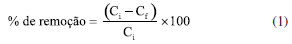 Metodologia de digestão das amostras Para a determinação do teor de metais em cada corante têxtil, uma quantidade de 1,0 g de cada amostra foi solubilizada e decomposta com água-régia (mistura de HCl:HNO3 (3:1)) em uma placa de aquecimento a 100 ºC durante 12 h. Posteriormente, as amostras foram deixadas em repouso até a temperatura ambiente. Por fim, as amostras foram filtradas e adicionadas a um balão volumétrico de 50 mL, e o volume foi aferido com solução de HNO3 a 5% (v/v). Produção de celulose bacteriana (CB) A produção de membrana bacteriana foi adaptada de um trabalho de referência.57 Foi utilizada a bactéria Komagataeibacter xylinus, tendo o glicerol como fonte de carbono. O meio de cultura foi produzido com 30 g L-1 de glicerol, 16 g L-1 de extrato de levedura, 5 g L-1 de peptona, 4 g L-1 de Na2HPO4, e 3,5 g L-1 de ácido succínico. A solução de nutrição foi distribuída em frascos de vidro borosilicato previamente autoclavados a 121 ºC por 15 min. Para a incubação, foram pipetados 5 mL de K. xylinus para meio Hestrin e Schramm (HS) por 48 h em condições estáticas a 30 ºC. Após a obtenção da membrana, a purificação foi realizada via imersão dos filmes em uma solução de NaOH 0,1 mol L-1, sob aquecimento a 80 ºC por 30 min. O processo foi repetido até o meio ficar neutro, pH 7,0. Instrumentação A microscopia eletrônica de varredura (MEV) da superfície da celulose foi realizada em um microscópio eletrônico de varredura (Tescan, MIRA 3) com uma tensão de aceleração de 20 kV e um detector de elétrons secundários Equations. O programa utilizado para medição da BC foi o ImageJ®, versão 1.51n (64-bit) de 2017, desenvolvido pela NIH® (EUA). O perfil vibracional dos grupos funcionais foi obtido pela técnica de espectroscopia vibracional com transformada de Fourier (FTIR) em um espectrofotômetro IR-TRACER-100 (Shimadzu®) utilizando-se pastilhas de KBr em uma faixa de 4000-400 cm-1. O comportamento de absorção foi analisado em um espectrofotômetro ultravioleta-visível (UV-Vis, Shimadzu®), modelo UV-1800 com uma cubeta de quartzo de 10 mm. O intervalo de trabalho foi delimitado entre 380-750 nm. A estabilidade térmica foi verificada no equipamento TGA 50 (Shimadzu®), utilizando atmosfera de N2, com um fluxo de 100 mL min-1 e rampa de aquecimento de 5 ºC min-1 até 800 ºC. O teor de metais foi analisado pela técnica de espectrometria de emissão óptica com plasma indutivamente acoplado (ICPOES). Análise multivariada Os resultados de caracterização química foram processados por análises estatísticas multivariadas por meio do software Minitab®, quanto à análise de componentes principais (PCA) e hierárquico (HCA). As análises estatísticas foram conduzidas usando dados obtidos pelos valores médios de absorbância e o teor de metais de todos os corantes. Um total de 10 amostras de corantes foram processadas utilizando análises quimiométricas. Os clusters foram criados a partir do agrupamento de variáveis de acordo com a cor específica e as concentrações de elementos, sendo contabilizados na forma gráfica bidimensional de PC1 vs. PC2. O programa utilizado foi o Minitab®, versão 19.1 (64-bit), 2019, desenvolvido pela LLC® (EUA). Estudos de estabilidade em função do meio e cinética de adsorção A estabilidade dos corantes têxteis foi avaliada a partir da resposta de absorbância em uma faixa de pH entre 3,0 a 11,0. Os 5,0 mL de solução estoque foram corrigidos com HCl 1,0/0,10 mol L-1 e NaOH 1,0/0,10 mol L-1 até atingir os valores de pH de interesse. O experimento de adsorção foi conduzido pela adição de ~ 100 mg de CB seca (por aproximadamente 6 h, até obter massa constante em estufa a 50 ºC), em forma de um quarto de círculo. A massa de CB foi mantida à temperatura ambiente, sob agitação constante e abrigo de luz em 20,0 mL das soluções estoque dos corantes avaliados. As amostras permaneceram sob agitação constante variando o tempo de contato de 0; 1; 2; 4; 8; 12; e 24 h. Em cada período, foram retirados 2,0 mL do sistema para análise de absorção eletrônica e devolvidos o mais rápido possível ao recipiente para evitar interferência na concentração da solução. O ensaio de adsorção foi realizado em triplicata, e a porcentagem de remoção do corante foi estimada pela Equação 1: ![]() onde Ci representa a concentração inicial (mg L-1) dos corantes; Cf é igual a concentração (mg L-1) medida no intervalo definido. Outro parâmetro avaliado foi a quantidade de corante retido pelo adsorvente no equilíbrio, qe (mg g-1), em um tempo t, definido pela Equação 2: ![]() onde V representa o volume da solução (L), e m é a massa seca do adsorvente (g).