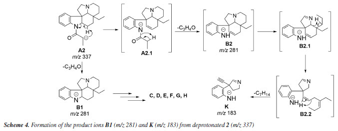 Fragmentation of deprotonated plumeran indole alkaloids by electrospray ionization tandem mass spectrometry |