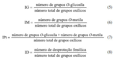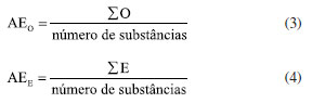 É importante ressaltar que todas as micromoléculas identificadas na via mista tiveram suas estruturas analisadas individualmente pelos autores deste estudo, considerando a quantidade de grupos de proteção presentes no anel aromático, como a glicosilação (G) e a metilação (M), bem como o total de proteção do metabólito (Pt) e também o quanto este está desprotegido (D). Logo, foi possível calcular, por meio de planilhas eletrônicas, seus respectivos índices, como veremos no subtítulo "Índices químicos modulares". Em relação aos índices químicos particulares, estes também foram estudados de forma individual pelos autores, foi contabilizado manualmente os números de ligações carbono-heteroátomo (x), carbono-hidrogênio (h), a quantidade de átomos de carbono do esqueleto molecular (n), quantas ligações carbono-carbono foram quebradas (q) e formadas (f) em relação à micromolécula precursora, números de sistemas cíclicos formados envolvendo heteroátomos com relação ao mesmo precursor (c) e número de unidades carbônicas adicionais em relação ao mesmo precursor (u). Já os níveis de oxidação (O) e especialização (E) do esqueleto molecular, utilizou-se fórmulas matemáticas (Equações 1 e 2) conforme descrito no subtítulo "Índices químicos particulares", as quais foram lançadas no Excel para obtenção dos resultados. Por meio da segunda planilha, representada pela Tabela 3, também se determinou o número de ocorrência (NO) de cada micromolécula, o número de tipos estruturais (NT), cujo produto NO × NT resulta no índice de diversificação (ID) dos esqueletos moleculares das micromoléculas oriundas da rota biossintética mista ocorrentes na família Myristicaceae. Índices químicos particulares Os índices químicos particulares foram determinados através do nível de oxidação (O) e especialização do esqueleto (E) de cada micromolécula pertencente às categorias químicas identificadas na via mista da família Myristicaceae, de acordo com as Equações 1 e 2, pré-definidas por Gottlieb et al.24 ![]() onde: x: número de ligações C-heteroátomo; h: número de ligações C-H; n: número de átomos de carbono do esqueleto molecular; q: número de ligações C-C quebradas em relação ao precursor; f: número de ligações C-C formadas em relação ao mesmo precursor; u: número de unidades carbônicas adicionais em relação ao mesmo precursor. Em seguida, obteve-se os parâmetros de avanço evolutivo de oxidação (AEO) e de especialização do esqueleto (AEE) de cada gênero, a partir de metabólitos especiais oriundos da rota biossintética mista ocorrentes em Myristicaceae conforme Equações 3 e 4. ![]() Índices químicos modulares Esses índices estão relacionados à presença de proteção e desproteção das hidroxilas ligadas ao anel aromático, os quais foram avaliados para cada uma das micromoléculas decorrentes da via mista, identificadas neste trabalho por meio de índices matemáticos chamados de índice de proteção por metilação (IM), índice de proteção por glicosilação (IG), índice de proteção total (IPt) e índice de desproteção (ID) conforme propõe Emerenciano27 e Gottlieb et al.24 nas Equações 5-8. ![]() Após, também, por meio de planilhas eletrônicas, calculou-se os parâmetros de avanços evolutivos de glicosilação (AEG), metilação (AEM), proteção total (AEPt) e de desproteção (AED) de cada gênero que possui micromoléculas da via mista da família Myristicaceae, empregando as Equações 9-12. ![]() Por meio desse levantamento obteve-se a dimensão do quanto a via mista apresenta proteção fenólica e qual tipo dessa proteção da família Myristicaceae. Vale ressaltar que todas as Equações supracitadas dos índices químicos modulares e particulares foram lançadas em planilhas eletrônicas para obtenção dos resultados. Relação de ocorrência entre flavona e flavonol Verificou-se a relação percentual entre a bioprodução de flavona (fo) e flavonol (fl) nos gêneros de Myristicaceae que apresentaram metabólitos especiais oriundos da via mista. Essa relação é um importante parâmetro no estabelecimento da correlação entre morfologia e diversidade química (Equação 13). ![]() A análise estatística multivariada foi realizada por meio da principal análise de componentes (PCA) e análise de agrupamento hierárquico (HCA). Para análise de similaridade química, foi construída uma matriz de dados binária baseada na presença ou ausência de tipos e/ou subtipos de flavonoides. Os dados foram submetidos ao coeficiente de Jaccard e o agrupamento foi realizado pelo método de grupos de pares não ponderados com média aritmética (UPGMA). Todo o procedimento estatístico foi realizado no software R®, versão 4.0.2 (R Core Team, 2020), desenvolvido na Nova Zelândia. Destaca-se que não foram encontrados trabalhos publicados que abordassem o estudo quimiossistemático de toda a família Myristicaceae. Além disso, no levantamento bibliográfico realizado no Scifinder, abrangendo o período de 1945 a 2022, não foram identificados metabólitos especiais oriundos da via mista para os gêneros: Bicuida, Brochoneura, Cephalosphaera, Coelocaryon, Compsoneura, Doyleanthus, Endocomia, Gymnacrantera, Haematodendron, Maulotchia, Osteophloeum, Otoba, Paramyristica, Scyphocephallum e Staudtia, porém, no final do ano de 2022 foi publicado um trabalho intitulado "Antibacterial activity of flavonoids and triterpenoids isolated from the stem bark and sap of Staudtia kamerunensis Warb. (Myristicaceae)", o qual identificou metabólitos oriundos da via mista no gênero Staudtia, dados que ainda não foram incluídos nas análises dos parâmetros quimiossistemáticos.