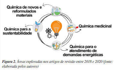 Paola B. Abib Centro de Ciências, Química, Farmacêuticas e de Alimentos, Universidade Federal de Pelotas, 96010-900 Capão do Leão - RS, Brasil *e-mail: fabiosangiogo@gmail.com This article includes a bibliographic review that allowed us to write an essay on the main topics that can be considered innovative in scientific research recently developed in the field of Chemistry. Therefore, we selected the three journals with the highest impact factor in the area: Chemical Reviews, Chemical Society Reviews, and Nature Materials. From these, we selected and analyzed the 5 articles with the highest number of citations in the years 2018, 2019, and 2020. The analysis allowed for the identification and presentation of themes arranged in 8 categories: structures containing metals, chemical catalysis, nanomaterials, electrochemistry, batteries/capacitors/supercapacitors, solar cells and photovoltaic systems, carbon-based structures and materials, among others. We also discussed the desired possibilities of application and potential of the study themes in the fields of medicinal chemistry, new and reformulated materials, and chemistry for sustainability and meeting energy demands. This allowed us to establish relationships between innovation, science, technology, and society, providing elements for training and encouraging discussions. INTRODUÇÃO As pesquisas realizadas no campo da Química representam um avanço significativo na compreensão de fenômenos que impulsionam o desenvolvimento científico e tecnológico, assim como a busca por soluções aos desafios atuais da sociedade.1 Nesse contexto, a inovação surge como um termo amplamente discutido nessa área e inúmeras outras, o qual suscita questionamentos sobre o que está sendo investigado nesse campo.2-5 Isso leva ao debate e à importância de compreender/identificar como o desenvolvimento da Ciência, especificamente no contexto das pesquisas científicas da área de Química e do que vem sendo desenvolvido, está articulado à inovação e à sua polissemia conceitual. O termo inovação, partindo de uma definição introdutória de dicionário, deriva do latim innovatio e refere-se ao ato ou efeito de inovar, indicando tudo o que é novidade ou que resulta em uma coisa nova.6 Nesse campo semântico, outros termos também se alinham ao de inovação, aportando definições similares, como invenção, atualização, modificação, modernização, renovação, dentre outros. Uma vez que a definição aportada pelo dicionário não é suficiente, ao considerar o termo a partir de um contexto histórico, ele acabou se tornando amplo e polissêmico,7 assumindo distintos significados, conforme o cenário inserido. Por exemplo, no período do renascimento, a inovação estava associada ao desenvolvimento artístico, enquanto que, na revolução industrial, a ideia de inovação remetia à revolução tecnológica.8 Além disso, ao longo dos séculos, pesquisadores pioneiros, em diversas áreas do conhecimento, contribuíram com considerações relevantes acerca da inovação, as quais possibilitaram traçar definições diversificadas sobre o conceito, que variam de acordo com o contexto, mas que, de maneira geral, designam um processo de constante transformação, elaboração e ressignificação.7,9,10 As produções em literatura especializada também vêm expressando as definições de inovação, articuladas aos inúmeros campos do conhecimento, explicitados, por exemplo, no contexto econômico, através da teoria de Schumpeter, na qual a “inovação seria a introdução comercial de um novo produto ou uma nova combinação de algo já existente".9 Ainda, como apresenta a literatura, em relação à economia e ao setor produtivo, a inovação está atrelada à competitividade, à produtividade e aos lucros.3 Destaca-se também o Manual de Oslo, que visa mensurar as atividades científicas, tecnológicas e de inovação, fornecendo diretrizes específicas para a coleta e a utilização de dados sobre a inovação.11 Segundo a própria definição do manual, a inovação “é um produto ou processo novo ou aprimorado (ou uma combinação de ambos) que difere significativamente dos produtos ou processos anteriores da unidade e que foi disponibilizado para potenciais usuários (produto) ou implementado pela unidade (processo)".11 Ao compreender as diversas definições que foram sendo (re)construídas com o passar do tempo, as inferências sociais corroboraram para que essa polissemia se ampliasse a cada novo contexto. Everett Rogers, sociólogo reconhecido por sua teoria de Difusão da Inovação, mencionou que a “inovação é uma ideia prática, ou objeto que um indivíduo percebe como novo [...] Se a ideia parece nova ou diferente do indivíduo, é uma inovação".12 Logo, a dispersão do termo inovação reiteradamente se vincula a essa compreensão de pensar, modificar, reconstruir e renovar algum conceito, produto, serviço, pensamento ou ideia, que consequentemente é organizada dentro de uma sociedade. Da dispersão geral ao contexto educacional e do Ensino de Ciências/Química, é importante marcar que as definições de inovação enfatizam a busca por respostas às necessidades de qualificar os processos de ensino e aprendizagem.13 Conforme define Carbonell, a inovação pode ser compreendida “como um conjunto de intervenções, decisões e processos, com certo grau de intencionalidade e sistematização, que tratam de modificar atitudes, ideias, culturas, conteúdos, modelos e práticas pedagógicas".14 Para o autor, as inovações, por apresentarem um caráter sólido, envolvem referências a um pensamento crítico e transformador, não se limitando a uma mudança superficial ou tecnológica.14 Nesse mesmo campo, Maceno e Guimarães comentam que as abordagens inovadoras para o Ensino de Química destacam a importância de práticas pedagógicas voltadas a promover uma aprendizagem significativa e contextualizada, 