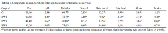Dentro da estrutura de dados gerada, os usuários têm acesso à matriz de correlação, acessando "Correlação", e diversos outros resultados em "Resultados", tais como ANOVA, Tukey e letras para facilitar a comparação entre os grupos do teste de Tukey HSD. Além disso, existe uma série de outros recursos gráficos que os usuários podem utilizar, como o gráfico "Box-Plot", "Tukey HSD", "Dispersão 2D" e "Gráfico Aranha". As Figuras 11b e 11c mostram o gráfico boxplot iterativo que pode ser gerado para cada parâmetro, no qual, ao clicar sobre cada barra, é possível obter algumas métricas, como os valores de mediana, máximo, mínimo, entre outros. Além disso, há ainda o gráfico de dispersão (Figuras 11d e 11e), que permite avaliar a correlação entre os parâmetros. Outras opções de visualização compreendem os gráficos de aranha e Tukey HSD (Figura 7S, Material Suplementar). Durante a criação do gráfico de aranha (Figuras 7Sa e 7Sb), os usuários têm diversas possibilidades de personalização, como selecionar variáveis ou grupos de amostras específicas, marcando as caixas de preenchimento disponíveis na interface. Por fim, nas Figuras 7Sc e 7Sd, é mostrado o gráfico iterativo de Tukey HSD, onde os usuários podem verificar graficamente se os pares de médias em um conjunto de grupos são significativamente diferentes entre si. Tomamos como o exemplo o parâmetro "Cor", se o usuário clicar em um grupo específico na área do gráfico, verificará que o resultado fornecido no eixo x pode mudar de grupo para grupo. Neste caso, o resultado para o grupo C1 no parâmetro "Cor" indica que dois grupos possuem médias significativamente diferentes em relação a este grupo. Caso o usuário deseje ainda criar a tradicional tabela do teste de Tukey HSD, rotulando as letras para facilitar a identificação, os resultados podem ser acessados em "Grupos", dentro da estrutura "Resultados", ver Tabela 1.