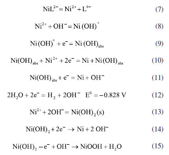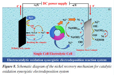 The combined effect of direct electrochemical oxidation at the anode and oxidation of indirectly generated OH breaks the complex state of Ni in the complexed state (NiL2-), as illustrated in Figure 8.