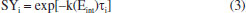 A energia interna real de íon precursor depende de outras variáveis e os modelos podem ficar tão complexos quanto necessário. Mais importante, porém, é notar que as descrições para o processo de CID requerem um tratamento estatístico, i.e., consideração da população de íons precursores que fragmentam. Por isso, parâmetros como tamanho da célula de colisão e tempo de ativação do íon podem influenciar significativamente o resultado de SY, i.e., equipamentos com células de colisão de diferentes tamanhos e tempo de permanência do íon irão impor condições energéticas de fragmentação diferentes e os valores de SY e EC50 serão diferentes mesmo para a mesma substância.1,27,30 Um estudo4 mostra que mesmo entre trap-type e HCD há uma diferença significativa da importância do tempo de ativação, uma vez que no trap-type o mesmo muda o espectro consideravelmente, enquanto no HCD não. Uma das principais explicações está no fato que o HCD não depende de um aumento gradual da energia cinética do precursor via ressonância, como ocorre na CID trap-type. Dado que energia e tempo de reação são fatores importantes para reações de dissociação, cada rota (ou canal) de reação de fragmentação tem uma constante de reação k associada. Especificamente, essa constante comumente é descrita em função da energia k(E) interna. Por isso, entender o processo físico-químico de reação de dissociação é importante. Ainda assim, também é necessário entender os aspectos físicos das colisões para obter-se modelos adequados para predizer espectros e quantidades características deles, como SY. A Equação 3, apresentada no trabalho de Kuki et al.,27 é um exemplo de modelo que prediz o SYi em função tanto de parâmetros físicos, como tempo de ativação τi para cada colisão i, da constante de reação dependente da energia interna k(Eint), uma propriedade intrínseca da reação unimolecular.