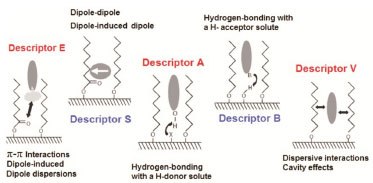 ![]() Figure 3. Principle of the solvation parameter model and the interactions related to each solute descriptor. Adapted from reference 102