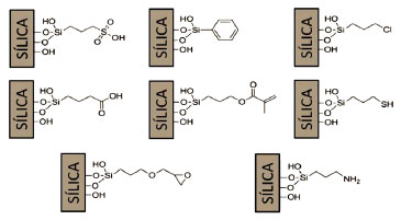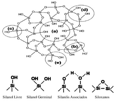 ![]() Figura 5. Estrutura da sílica e os grupamentos presentes