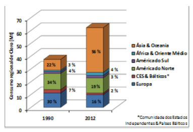 ![]() Figura 3. Consumo regional de gás cloro em 199011 e 201219