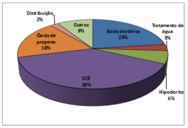 ![]() Figura 4. Segmentação do consumo da produção nacional de gás cloro em 201315