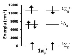 ![]() Figura 6. Diagrama de energia para as configurações eletrônicas nos orbitais moleculares 1πg* de dioxigênio