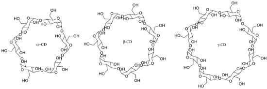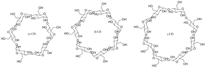 Atualmente, produtos derivados de plantas vêm sendo amplamente explorado pelas indústrias farmacêutica, cosmética, alimentícia e veterinária. A diversidade de compostos vegetais e seus efeitos biológicos comprovados têm contribuído fortemente para o crescente interesse em produtos derivados de plantas. Em geral, a atividade biológica destes produtos está associada à presença de compostos denominados de fitoquímicos, que sao metabólitos secundários sintetizados pelas plantas, sendo classificados em diversas classes, como por exemplo, os carotenoides, alcaloides, polifenóis, terpenos, esteróis, saponinas, compostos contendo nitrogênio e enxofre.4 Neste sentido, se destacam os óleos essenciais (OE), que sao misturas químicas complexas, compostas por monoterpenos, triterpenos e sesquiterpenos.5,6 Sao compostos voláteis e odoríferos sensíveis à luz, calor e oxigênio, e produzidos a partir do metabolismo secundário de plantas. Possuem comprovadas propriedades antimicrobianas, inseticida, antiviral e antioxidante. Assim, apesar do grande potencial de aplicaçao tecnológica dos óleos essenciais, eles apresentam diversas limitaçoes, como por exemplo, complexidade química, elevada volatilidade, susceptibilidade à degradaçao e propensao à oxidaçao, insolubilidade em sistemas aquosos e em geral, baixa biodisponibilidade, que dificultam seu emprego direto em produtos mais elaborados. Dentre as tecnologias propostas para modificar propriedades físicas e químicas dos OE, destaca-se a microencapsulaçao. A microencapsulaçao é muito usada para solucionar problemas com substâncias voláteis ou que possuem sabor e/ou odor desagradável, por aumentar a estabilidade destes em condiçoes adversas, como na presença de luz, oxigênio, calor e pH extremos, mascarar odor e sabor desagradáveis e reduzir a volatilidade.7 Esta técnica consiste no revestimento ou aprisionamento de um material ou mistura de materiais em outro material ou sistema. Uma forma muito empregada de encapsulaçao de OE e aromas é a formaçao de complexos de inclusao com β-ciclodextrina. As ciclodextrinas (CDs) sao excipientes constituídos por unidades de D-glucopiranose que quando unidas formam uma estrutura cíclica. As CDs podem conter 6, 7 ou 8 unidades de glicose, sendo denominadas de α-CD, β-CD e γ-CD respectivamente (Figura 2), sendo que a ciclodextrina mais usada e estudada é a β-CD. Uma excelente revisao histórica sobre a utilizaçao das ciclodextrinas desde seu descobrimento até os dias atuais encontra-se em Loftsson e Duchêne.8