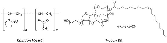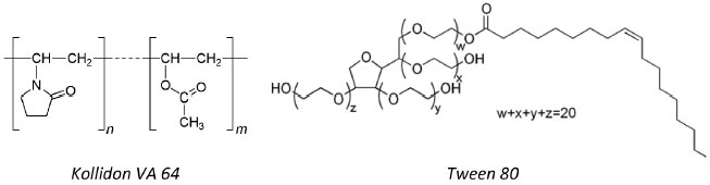 Figura 3. Estrutura química do polímero (kollidon VA 64) e do tensoativo (tween 80) utilizados para compor os sistemas de inclusao ternário e quaternário avaliados
