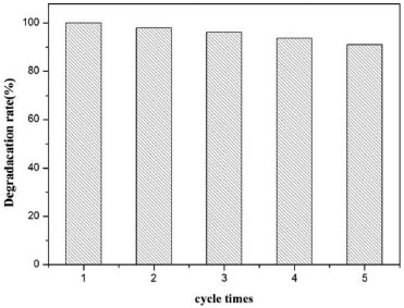 ![]() Figure 6. The degradation rate of indigo carmine by Cr/S/TiO2-HGM as a function of cycle. Reaction time = 80 min (λ > 410 nm)