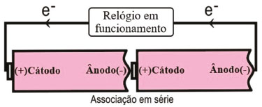 ![]() Figura 7. Combinação dos polos positivo e negativo numa associação em série necessária para o aumento do potencial total