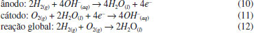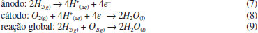 ![]() Figura 9. (a) Medida do potencial de duas células a combustível associadas em série; (b) esquema simplificado do funcionamento da célula a combustível em solução básica, NaOH 1,0 mol L-1