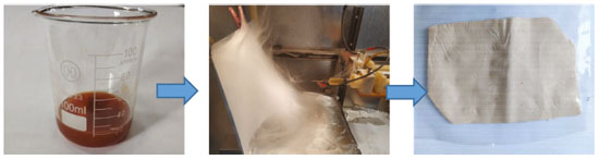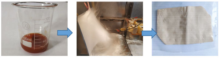 ![]() Figure 1. Process scheme of preparing Pt-Rh-Pd / CeO2-ZrO2-La2O3-Al2O3 fibrous catalysts by electrospinning