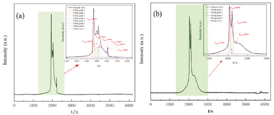 TPO-IR analysis of coal Figure 4(a) and (b) present the TPO-IR curves of Gas coal and Anthracite, respectively. It can be seen that the sulfur in the coal is gradually released during the temperature programmed process, and the release temperature range is about 250-500 °C. For Gas coal, the TPO-IR curves of sulfur release can be deconvoluted into seven individual curves, corresponding to the Tmax of 343 °C, 347 °C, 354 °C, 359 °C, 360 °C, 361 °C and 390 °C, respectively. By contrast, the TPO-IR curves of Anthracite can be deconvoluted into four individual curves, corresponding to the Tmax of 360 °C, 371 °C, 372 °C and 385 °C, respectively. Theoretically, each Tmax corresponds to a sulfur species with a certain structure. At present, it is difficult to assign all these peaks in detail. This is because the sulfur species in coal are complex. Generally, the sulfur species of coal mainly include inorganic and organic sulfur species.35,36 Wherein, the inorganic sulfur species are present as the cubic pyrite or orthorhombic marcasite, while the organic sulfur species may occur in different forms of functional groups like disulphides, aliphatic or aromatic thiols, aliphatic, aromatic or mixed sulphides and disulphides, heterocyclic compounds, thiophenes or condensed thiophenic structures.6,36 Next work, the standard samples of known sulfur species with different structures will be determined to assign complex sulfur species peaks. Only the total sulfur content of two coals is given here: 0.83% of Gas coal and 1.47% of Anthracite. It can be seen that the sulfur content in Anthracite is higher than that in Gas coal. Moreover, it is noteworthy that the sulfur content measured by TPO-IR method is not consistent with the results of elemental analysis of coal (see Table 2) due to the very uneven distribution of sulfur in coal. Compared with the data in Table 2, the sulfur content of Gas coal and Anthracite measured by TPO-IR method is 0.11% higher and 0.71% lower than the corresponding element analysis results.