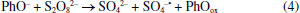 MECANISMOS DE REAÇÃO O íon persulfato pode reagir diretamente com alguns compostos orgânicos (CO), gerando radical sulfato (Equação 12) e radicais orgânicos (Equação 13) que propagam as reações de degradação.16 Entretanto, a principal via de degradação em sistemas ativados envolve a formação preliminar de radical sulfato, agente eletrofílico que pode reagir com moléculas orgânicas por abstração de hidrogênio, adição a duplas ligações ou transferência de elétrons. ![]() Em meio aquoso, entretanto, radical sulfato hidrolisa formando radical hidroxila (Equação 14), espécie que pode reagir com moléculas orgânicas por abstração de hidrogênio, adição a duplas ligações e substituição eletrofílica. Uma vez que a hidrólise é fortemente favorecida em meio alcalino (Equação 15), admite-se que radical sulfato seja predominante em meio ácido, enquanto radical hidroxila seja predominante em meio alcalino. ![]() Embora o uso de agentes sequestrantes de radicais permita evidenciar as espécies radicalares mais ativas no processo de degradação, é seguro afirmar que ambas as formas radicalares participam do processo. Estudos recentes de Yang et al.,29 entretanto, sugerem que radical hidroxila esteja principalmente envolvido em reações de abstração de hidrogênio e de adição, enquanto radical sulfato participe preferencialmente de reações de transferência envolvendo um elétron, como verificado em estudos de degradação de sulfonamidas. Recentemente, estudos teóricos sobre a degradação de poluentes orgânicos fenólicos por radicais hidroxila e sulfato foram realizados por Mei et al.30 Nesses estudos, a reatividade de 19 poluentes fenólicos em solução aquosa foi avaliada por meio da teoria do funcional de densidade, confirmando-se a transferência de um elétron como a principal via de reação do radical sulfato. Na Figura 3 são ilustradas essas diferenças mecanísticas, tomando fenol como exemplo e antecedentes reportados por Luo et al.31