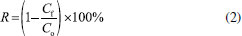 MATERIAL AND METHODS Materials Fresh balsa lumber was purchased from a local wood products manufacturer. Ethanol, n-hexane, toluene, chloroform, dichloromethane, 1,2-dichloroethane, hydrochloric acid and sodium hydroxide were purchased from purchased from Tianjin Chemical Reagent Factory. Kerosene was used as received from Sinopec Group. Preparation of wood slice Balsa wood was sawed into slices from a fresh log along the transverse direction by circular saw. To clear residual sawdust and debris, the two sides of the sawed slice were trimmed with a sharp razor blade. The slice was then soaked in 200 mL ethanol for 0.5 h to remove soluble components and was taken out and dried in an air oven at 50 °C for 0.5 h before use. The cooperative effect of massive amphiphilic groups and hierarchical surface structure endowed the natural wood with underwater superoleophobicity and underoil hydrophobicity. After treatment, the underoil hydrophobicity of the slice was converted to underoil superhydrophobicity. Because wood had a weak acidic character, the slice showed underoil superhydrophobicity to acidic and neutral water and underoil superhydrophilicity to basic water. This superwettability, combined with its natural permeability, could be exploited to continuously separate light oil/water/heavy oil triphase mixtures. Separation of triphase mixtures The treated wood slice was fixed between two glass tubes with the same diameter, above which, a dropping funnel with a valve was fixed. Three types of light oil/water/heavy oil triphase mixtures, including kerosene/water/chloroform, toluene/water/dichloromethane and hexane/water/dichloroethane, were separated by this device. The oils and water were dyed with oil red and methylene blue, respectively. A 120 mL of light oil/water/heavy oil triphase mixtures (1:1:1, V:V:V) was added to the dropping funnel. After prewetting the slice with heavy oil, open the valve of the dropping funnel to allow the triphase mixtures to flow into the upper tube. The slice initially came into contact with the heavy oil, which passed through the slice and was collected in a designated beaker through the below tube. No water was observed entering into the beaker through the slice. The pH of the water was then shifted from acidic or neutral to basic by the addition of NaOH solution. After basification for about 15 seconds, the water layer passed though the slice and was collected in a designated beaker. Finally, only upmost light oil was repelled and collected in the upper glass tube. In this way, light oil, water and heavy oil mixture were separated. As a very important parameter for oil/water mixture separation, the flux of oils and water permeating through the slice was calculated by the following formula (1): ![]() where F represents the permeation flux during the filtration process (L m-2 h-1), V is the volume of permeated liquids (L), A is the valid area of the slice (m2) and t is the required time (h) for separating mixtures while keeping the height of the feed solution constantly at 10 cm. Then the oil/water separation efficiency was calculated in terms of the liquid rejection coefficient (R) from the following equation (2): ![]() where Cf and Co denote the oil (water) concentration in the water (oil) samples after separation and the equivalent oil concentration of the mixture before separation, respectively. Characterizations The structures of the balsa slices were observed by a field emission scanning electron microscopy (FESEM, Hitachi SU8000). The contact angle measurement (PD-200, Attension Theta System, Sweden) was adopted to measure the slice surface wettability at room temperature. The contact angle of droplets (3 μL, measured with a microsyringe) on three different regions was measured 10 s after the contact angle becoming virtually constant on the slice surface, and the average angles were calculated to determine the wettability of the slice. The surface chemical composition was investigated by a Brucker Tensor 27 FTIR spectrometer (Bruker Optics, Germany). Photographs of the separation process were taken with a digital camera (D7000, Nikon). The water content in collected oils was accurately analyzed using Karl Fischer Titrator (YT-200, China). The oil content in the collected water was determined by infrared oil content analyzer (Oil 460, China).