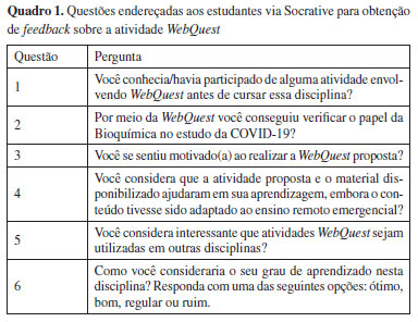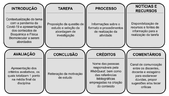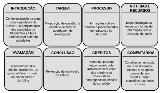 | A bioquímica por trás da Covid-19: desenvolvimento e aplicação de webquest direcionada ao ensino remoto emergencial The biochemistry behind Covid-19: webquest development and application for emergency remote teaching |