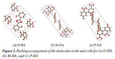 Raman spectroscopy data acquisition A portable Raman spectrometer was used in this experiment.22 The light source was a 785 nm near-infrared laser.23 The laser energy was set to 200 mW and the integration time was set to 10 times the standard time (15 s), which were chosen to optimize the Raman peak intensity. The air spectrum was used as a blank reference and measured at room temperature. The samples were then loaded into a cuvette without fluorescent background. The cuvette was scanned in a darkroom at a set focal length. Each sample was scanned three times consecutively and the average spectrum was then obtained from these three scans. This study focuses on selecting suitable fitting data points from the spectra, then determining the fitting order that matches the spectral characteristics, and finally using the principle of least squares to calculate the best approximation function for these data points for the five-nominal fitting baseline correction.24 Count DFT method The most common application of DFT is realized through the Kohn-Sham method, with the simplest approximate solution being the local density approximation (LDA).25,26 This method is widely employed in calculations pertaining to solid-state physics. In the majority of cases, DFT provides results that are highly satisfactory when compared to other methods for solving quantum mechanical many-body problems. Configuration searches for the O-, M-, and P-HA molecules were conducted using data sourced from the Cambridge Crystallographic Data Centre (CCDC) database.27 The resonance spectrum of a single molecule calculated using DFT often results in a horizontal line. Consequently, a protocell comprising multiple molecules was selected for simulation calculations. After numerous calculations and screening steps, a seven-molecule unit cell was ultimately established, as depicted in Figure 3. The Becke-3-Lee-Yang-Parr combined with dispersion correction (B3LYP-D3) method was chosen (basis set 6-311G(d, p)) to conduct the studies.28 The simulation experiments were conducted using Gaussian 16 (version Windows, Gaussian, Inc., Wallingford, CT, USA).