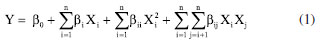 Pode-se observar na Tabela 2 que os valores de rendimento e TF dos extratos obtidos variam de acordo com as condições de extração, o que sugere influência de alguma variável nessas respostas. No entanto, para avaliar qual variável apresenta influência significativa nos resultados recorre-se a gráficos de Pareto (Figuras 2Sa e 2Sb, Material Suplementar), o qual apresenta os termos significativos (p < 0,05) referentes às variáveis estudadas e efeito relativo (positivo ou negativo) de cada uma no valor do rendimento ou TF dos extratos. Através do gráfico de Pareto (Figura 2Sa, Material Suplementar), pode-se observar que os termos referentes às variáveis concentração de etanol (X1), tempo de extração (X2) e relação solvente para sólido (X3) apresentaram efeitos significativos no rendimento de extração: X1 possui efeito negativo, X2 e X3 possuem efeito positivo. O termo quadrático (X1X1) apresentou efeito negativo. O termo de interação X1X2 também foi significativo, apresentando efeito positivo. Adicionalmente, o termo referente ao tempo de extração (X2) exerce influência significativa no TF, sendo seu efeito positivo (Figura 2Sb, Material Suplementar). O termo quadrático da concentração de etanol (X1X1) e o termo de interação X1X3 apresentaram-se significativos, ambos com efeitos negativos em relação ao TF. Os demais termos, considerando a respectiva resposta, não foram significativos. Um efeito linear positivo (como aqueles apresentados por X2 e X3) indica que a resposta sofre um aumento com a variação dessa variável do nível baixo para o alto. Um efeito quadrático negativo (como observado para X1X1) indica um ponto de máximo de recuperação dos compostos extraídos com a modificação dessa variável.7,14,19 Esses resultados mostram que essas variáveis, nos níveis testados, apresentam influência na extração por ultrassom de compostos fenólicos das folhas de L. alba. Os efeitos das variáveis independentes no rendimento e no TF dos extratos podem ser observados por meio de gráficos de superfície de resposta tridimensional (Figura 3S, Material Suplementar). Na Figura 3S (Material Suplementar) observa-se um aumento inicial do TF com o acréscimo da concentração de etanol até aproximadamente 30%, seguido por uma redução a partir desse ponto. Esse padrão pode ser atribuído, principalmente, à semelhança de polaridade entre os compostos fenólicos extraídos e o solvente de extração nessa concentração específica de etanol. É amplamente reconhecido que a eficiência da extração está diretamente relacionada à compatibilidade de polaridade entre o solvente e os compostos-alvo, o que influencia diretamente sua solubilidade e, portanto, no processo de transferência de massa dos compostos da matriz para o solvente de extração. No entanto, concentrações elevadas de etanol podem promover a desnaturação de proteínas e dificultar a solubilização de compostos fenólicos presentes na matriz vegetal, afetando negativamente a transferência de massa no processo. Esses fatores ajudam a explicar a redução observada no TF em concentrações superiores a aproximadamente 30% de etanol.9,23 Com base na análise de regressão, a relação entre as variáveis independentes no rendimento e no TF, separadamente, podem ser descritas por meio de equações polinomiais quadráticas (Equação 3 para o rendimento e Equação 4 para o TF). ![]() em que X1, X2 e X3, nas Equações 3 e 4, são as variáveis codificadas concentração de etanol, tempo de extração e relação solvente para sólido, respectivamente. Os modelos individuais propostos para descrever o rendimento e TF dos extratos foram considerados significativos, apresentando F-valor (p-valor < 0,05) calculados acima daquele considerado expressivo para cada modelo (Tabela 1S, Material Suplementar). Os modelos apresentaram bons ajustes às respostas como evidenciado pelos altos valores de R2 de 0,9473 e 0,9185, respectivamente para o rendimento e TF. Adicionalmente, os altos valores dos coeficientes de determinação ajustados (R2ajustado) de 0,8524 e 0,7717, para o rendimento e TF respectivamente, ambos próximos aos respectivos R2, confirmam a grande significância do modelo obtido e o alto grau de correlação entre os valores experimentais e os preditos. Esses resultados indicam uma alta capacidade dos modelos em prever a relação entre as variáveis independentes e dependentes (respostas). Além disso, os valores dos coeficientes de variação (C.V.) menores que 10% (4,01% para o rendimento e 5,66% para o TF) indicam que há uma grande precisão e confiabilidade dos dados experimentais e uma baixa variação das respostas em relação ao valor médio dos experimentos, considerando as respectivas respostas.7,19,27,28 Assim, os modelos estimados podem ser adequadamente utilizados para prever o rendimento e o TF dos extratos obtidos da espécie L. alba. Através dos experimentos realizados foi possível observar que as três variáveis estudadas influenciaram o rendimento e o TF dos extratos de L. alba, com destaque para o efeito da concentração de etanol no rendimento e para a concentração de etanol e o tempo de extração no TF. Com base nos resultados estatísticos, o rendimento de extração predito pelo modelo (Equação 3) utilizando as condições otimizadas de extração por EAU (28,59% de etanol, 20 min e 69,09 mL g-1) foi de 21,07%. Segundo o modelo proposto para a resposta TF (Equação 4), as condições ótimas de extração foram: 31,01% de etanol, 17,37 min e 69,90:1 mL g-1, obtendo um valor ótimo de TF predito pelo modelo de 29,36 mg EAG g-1 ms. Otimização de resposta múltiplas por EAU As condições de extração ótimas preditas para cada resposta separadamente (rendimento: 28,59% de etanol, 20 min e 69,09 mL g-1; TF: 31,01% de etanol, 17,37 min e 69,90:1 mL g-1) foram diferentes daquelas preditas para a maximização das duas respostas simultaneamente