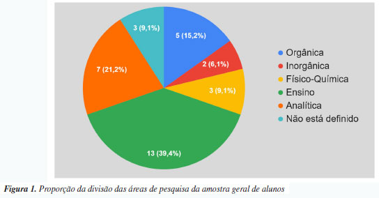 PERCURSO METODOLÓGICO Contexto e participantes da pesquisa Para apresentarmos o contexto e participantes da pesquisa, situamos que, em decorrência do agravamento da pandemia da doença do coronavírus (COVID-19) em março de 2020, as atividades que foram descritas e analisadas no presente estudo sucederam-se na forma de ensino remoto emergencial (ERE). Nesse cenário, foram analisados quatro semestres da disciplina Sustentabilidade e Educação Ambiental oferecida no Programa de Pós-Graduação em Química (PPGQ) nos períodos correspondentes aos semestres letivos de 2020/01, 2020/02 e 2021/02 totalmente no formato de ERE e em 2022/01 de forma híbrida com o retorno das aulas presenciais, mas com a mesma sequência de atividades. As aulas síncronas e atividades assíncronas foram desenvolvidas na plataforma digital Moodle (modular object-oriented dynamic learning environment) da Universidade Federal do Rio Grande do Sul (UFRGS). Dentro dessa plataforma, existem muitos recursos disponíveis, assim, as professoras formadoras da disciplina puderam criar salas de estudo, disponibilizar os materiais didáticos, realizar avaliações, propor discussões e as mais diversas interações entre os estudantes. Participaram da pesquisa 33 estudantes de mestrado e doutorado do PPGQ-UFRGS, os quais assinaram um Termo de Consentimento Livre e Esclarecido autorizando a utilização do conteúdo dos questionários e das produções da disciplina Sustentabilidade e Educação Ambiental nos trabalhos que dela derivassem. Destacamos que o projeto de pesquisa foi aprovado pelo Comitê de Ética em Pesquisa da UFRGS, com número do parecer de aprovação: 5.566.650. Desses 33 alunos, mais da metade (18) são alunos oriundos do curso de doutorado e os outros 15 de nível de mestrado. Com idade mínima de 22 anos, máxima de 60 e média de 30 anos. Mesmo a maioria dos estudantes sendo cursistas do doutorado, a média de idade é relativamente baixa, o que pode indicar a opção de continuação, entre a graduação e a pós-graduação em Química. Além do mais, na primeira aula da disciplina foram mapeadas as áreas de pesquisa dos sujeitos do presente estudo e evidenciou-se que a distribuição dessas áreas era diversificada, com destaque para as áreas de Ensino e Analítica (Figura 1). Historicamente pesquisadores vinculados ao PPGQ da UFRGS desenvolvem pesquisas em Educação Química, mas a área de concentração "Ensino de Química" foi reconhecida como uma das grandes áreas de pesquisa do PPGQ somente a partir de 2019. Um grupo de alunos se identificou como em área ainda não definida, devido ao fato de serem cursistas ingressantes do mestrado, visto que o PPGQ da UFRGS estabelece que a área de pesquisa possa ser escolhida no prazo de três meses após o ingresso do aluno no curso. A heterogeneidade das áreas de conhecimento da Química pode explicar a diversidade de conteúdos e contextos em que os EC produzidos pelos alunos poderão ser trabalhados, como será apresentado na sequência deste texto.